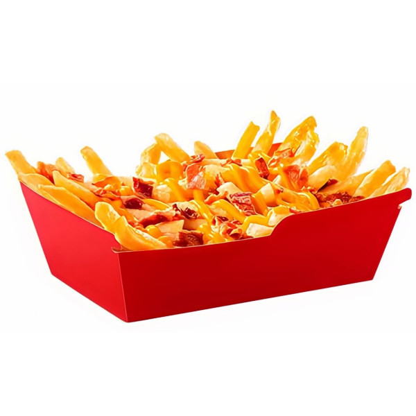 Картофель фри, хрустящий бекон, сырный соус, моцарелла, кранч-лук.