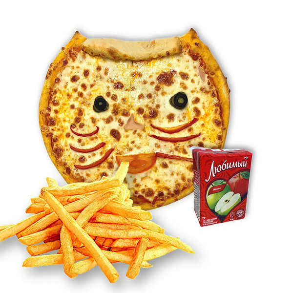 Пицца с ветчиной 25 см, фри 150 грамм, сок 200 мл + В наборе раскраска