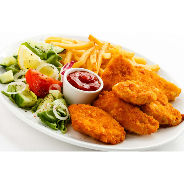 Куриное филе в темпурном кляре и сухарях +Соус+картофель фри 180/30/150