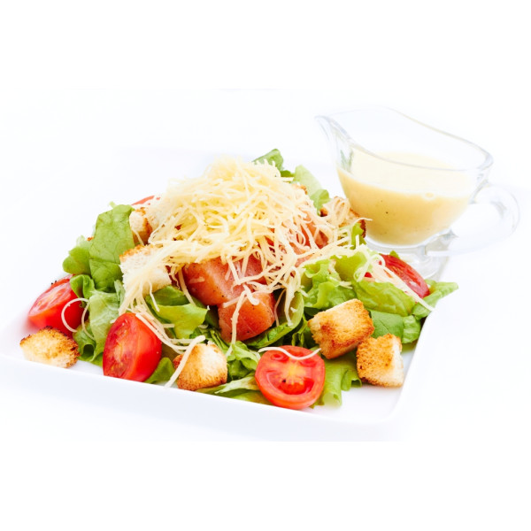 Куриное филе, салат, свежий помидор, яицо, сухари, соус "Цезарь", сыр пармезан